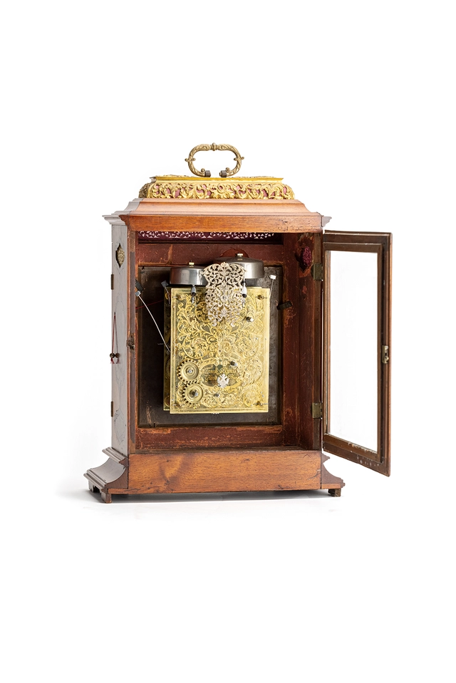 A rare German mahogany table clock of 8-day duration by Peter Behrens Schleswig, circa 1770.