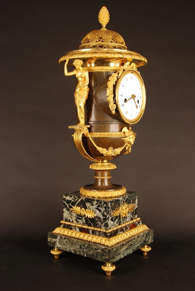 PV04 Vaseshape mantelclock with gilt and patina case € 5950 $ 6993 £ 5199 ¥ 1083198 DKK 44457 CHF 5426 NOK 66955 CA$ 9584 HK$ 54648
