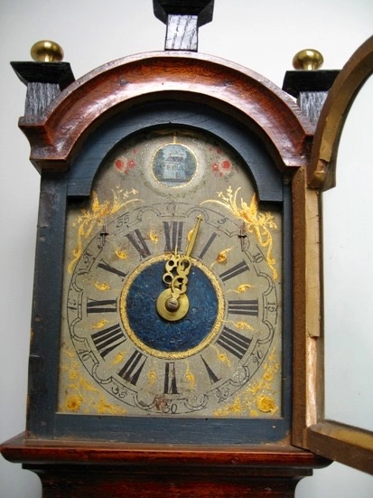 A small and attractive Dutch Frisian stained wall clock 'kantoortje' circa 1830