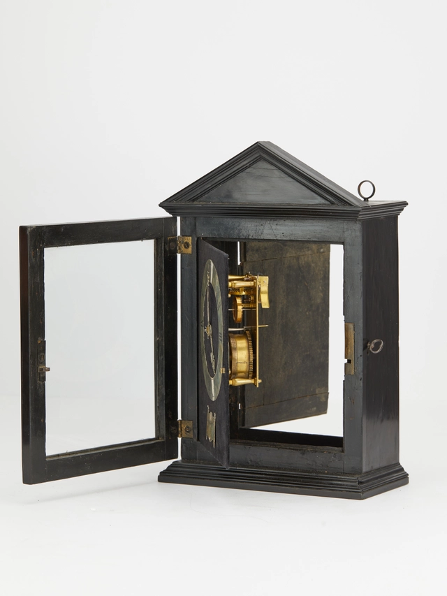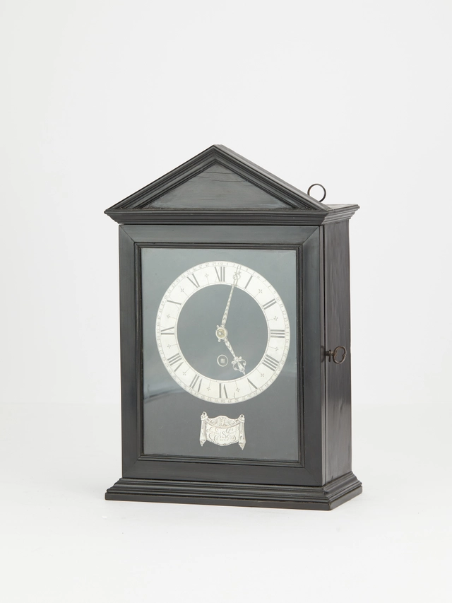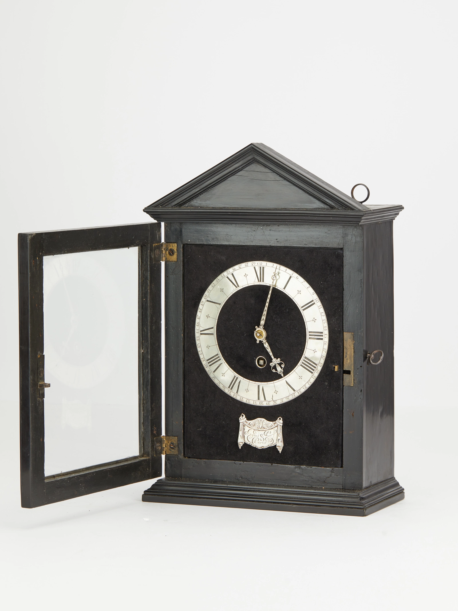 An early Dutch ebony and silvered 'Hague clock', by Christiaan Reynaert Haghe, circa 1665