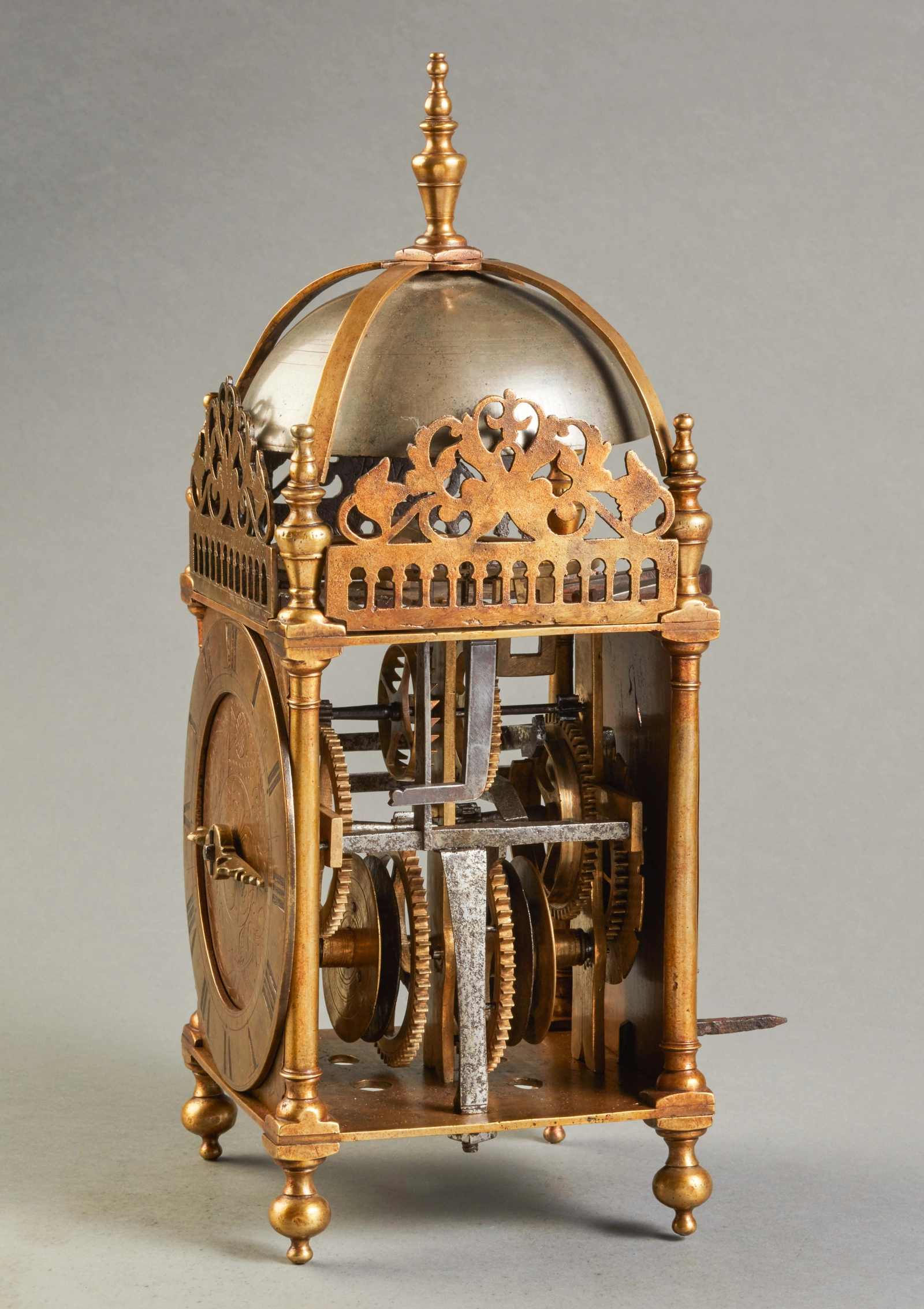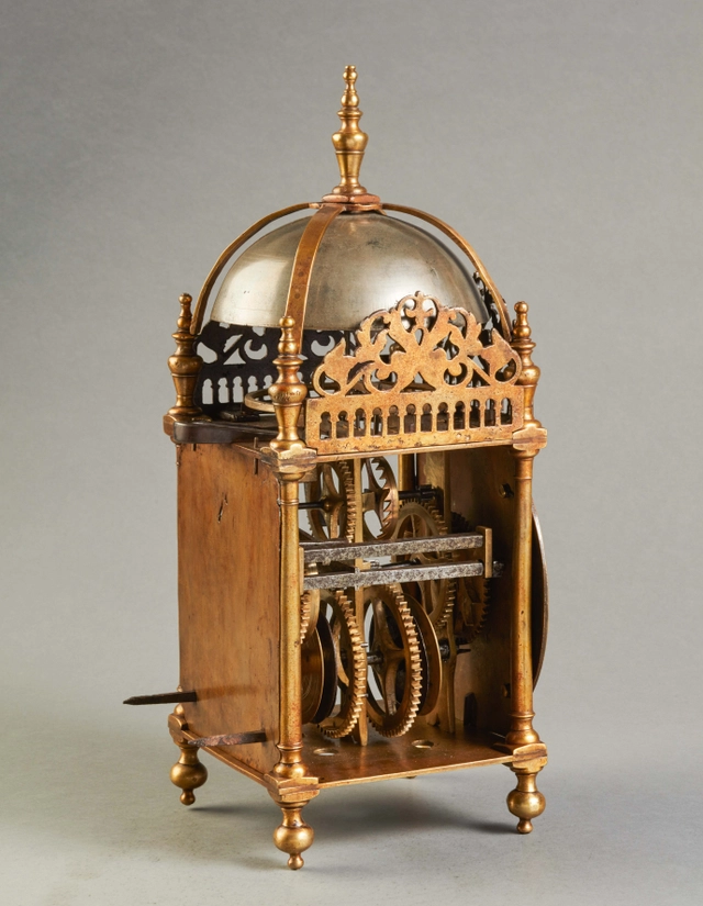 An early English brass engraved Italian striking lantern clock, by John Pleydell, circa 1675