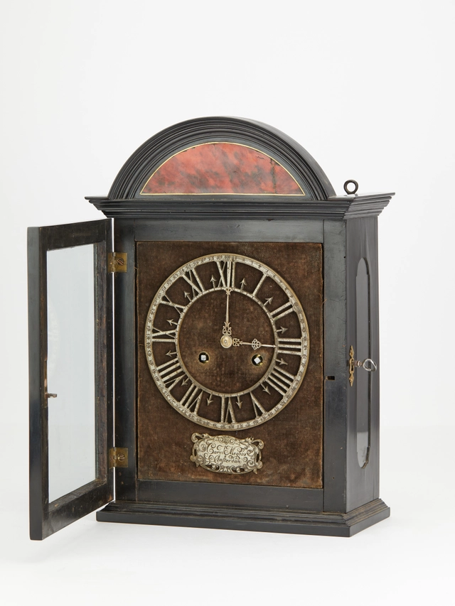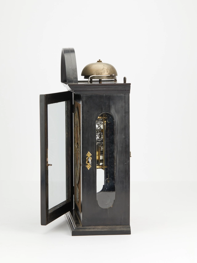 An early Dutch ebony and silvered 'Hague clock', by Christiaan Reynaert Haghe, circa 1665