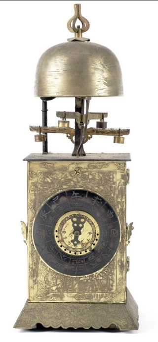 A good Dutch Geldern polychrome painted alarm 'stoelklok', by Goslink Ruempol, 1746