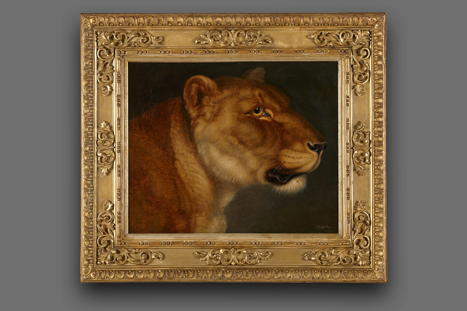 Several studies are known of animals that feature on the painting. Peter worked up a number of these studies more than once, such as this lioness portrait, a very similar version of which was sold at Sotheby’s as lot 161 on 7 July 2022.