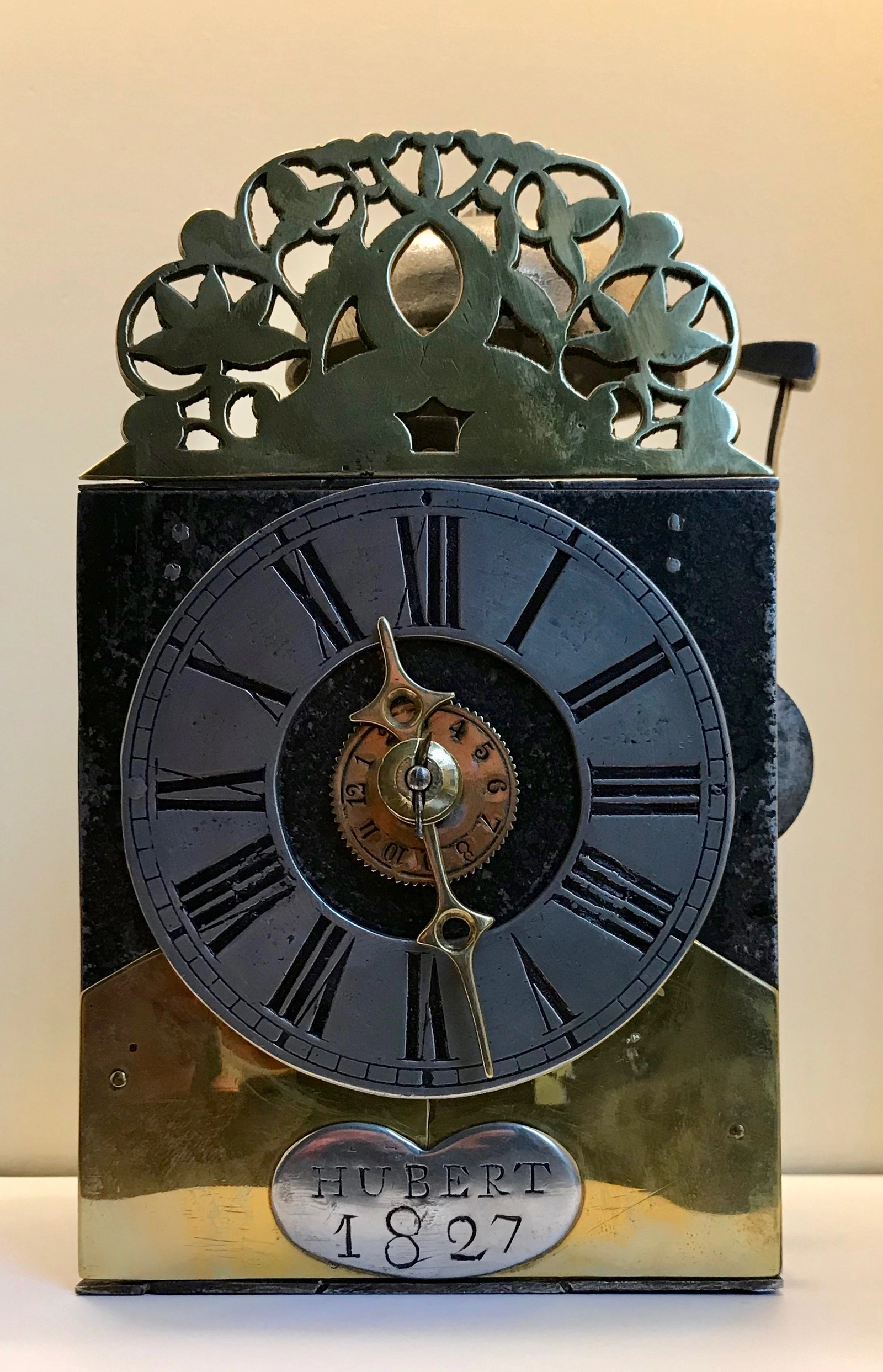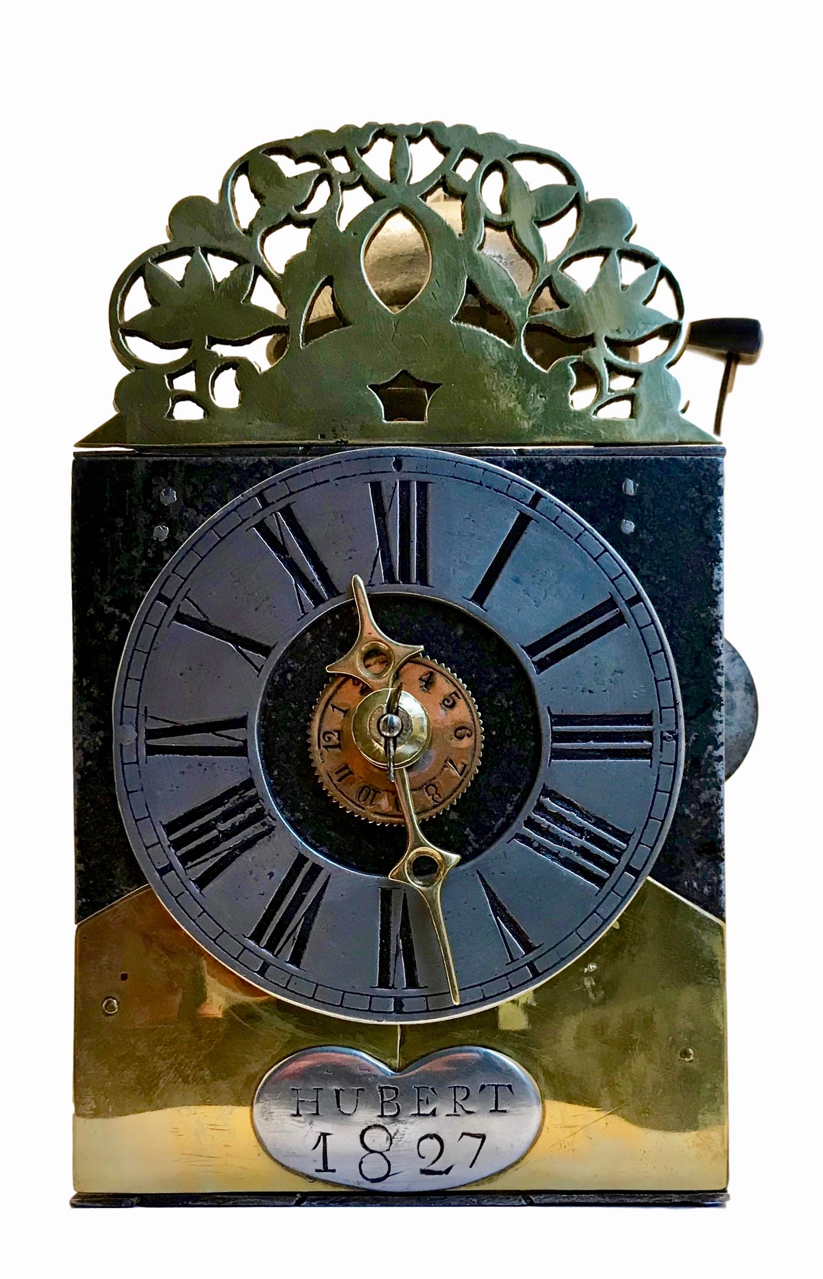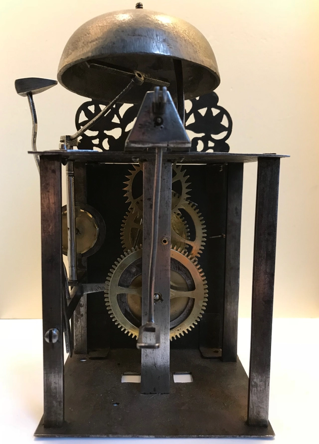 A French iron and brass alarm lantern clock, by Rouelle, circa 1725