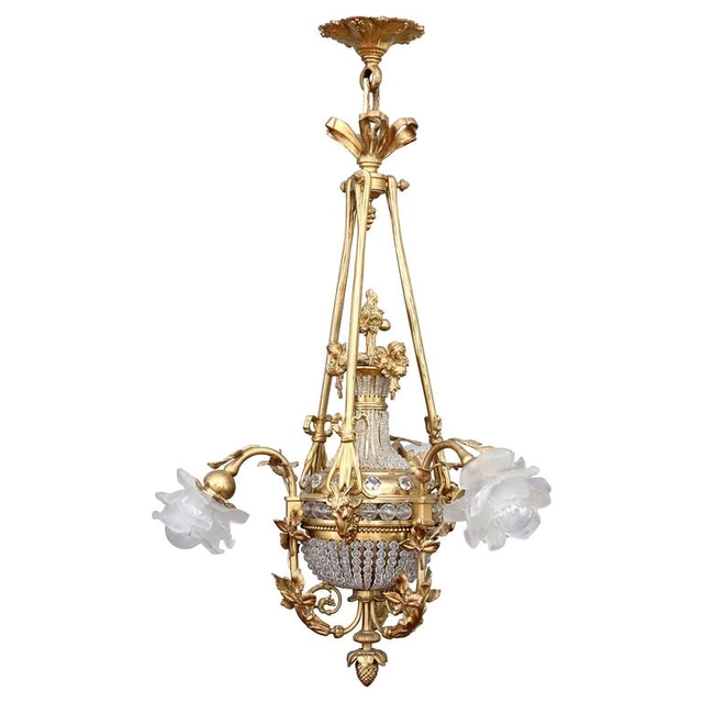 A very heavy bronze, late 19th century, 6-light chandelier of very good quality.
