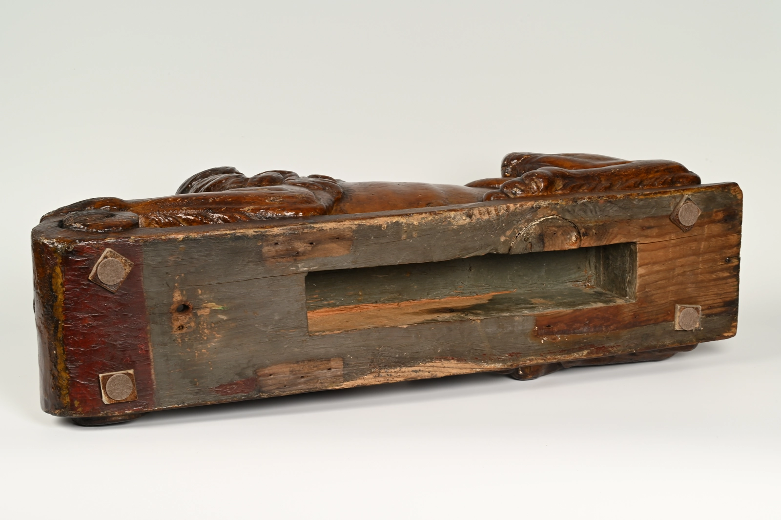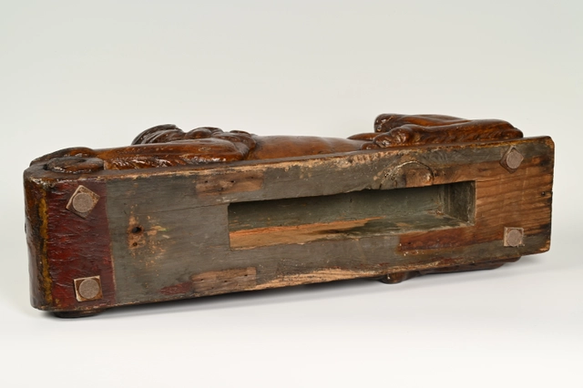 Woden statue for on the rudder at the stern of a wooden ship.