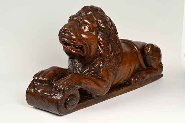LION, wooden statue for on the rudder at the stern of a wooden ship.