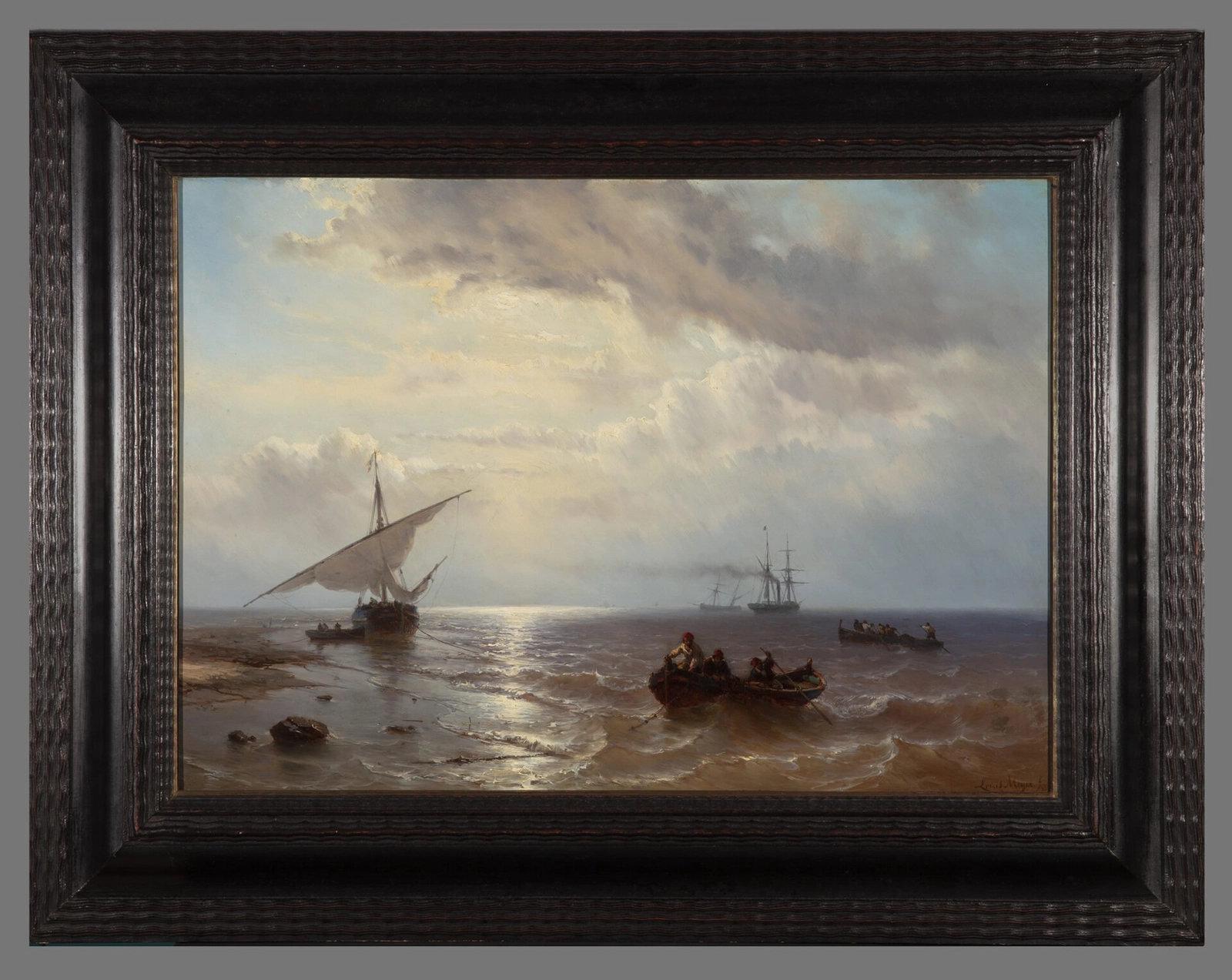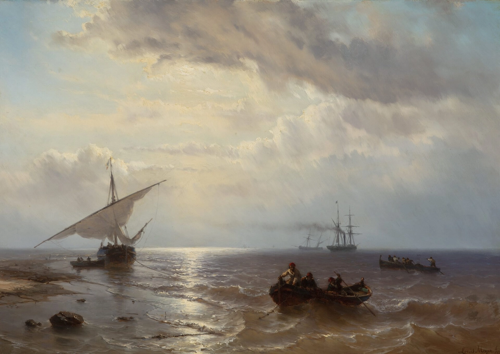 He left for a second period to France, where he stayed from 1842-1847. During this time he became increasingly skilled in painting seascapes with ships. After a trip across the Mediterranean in 1846, Meijer completely devoted himself to this genre. He was so successful that his entry to the Salon in Paris in 1847 received much praise. The leading French magazine Journal des Artistes even stated that Louis Meijer was ‘le roi de la marine’, who had deposed the famous French marine painter Théodore Gudin.