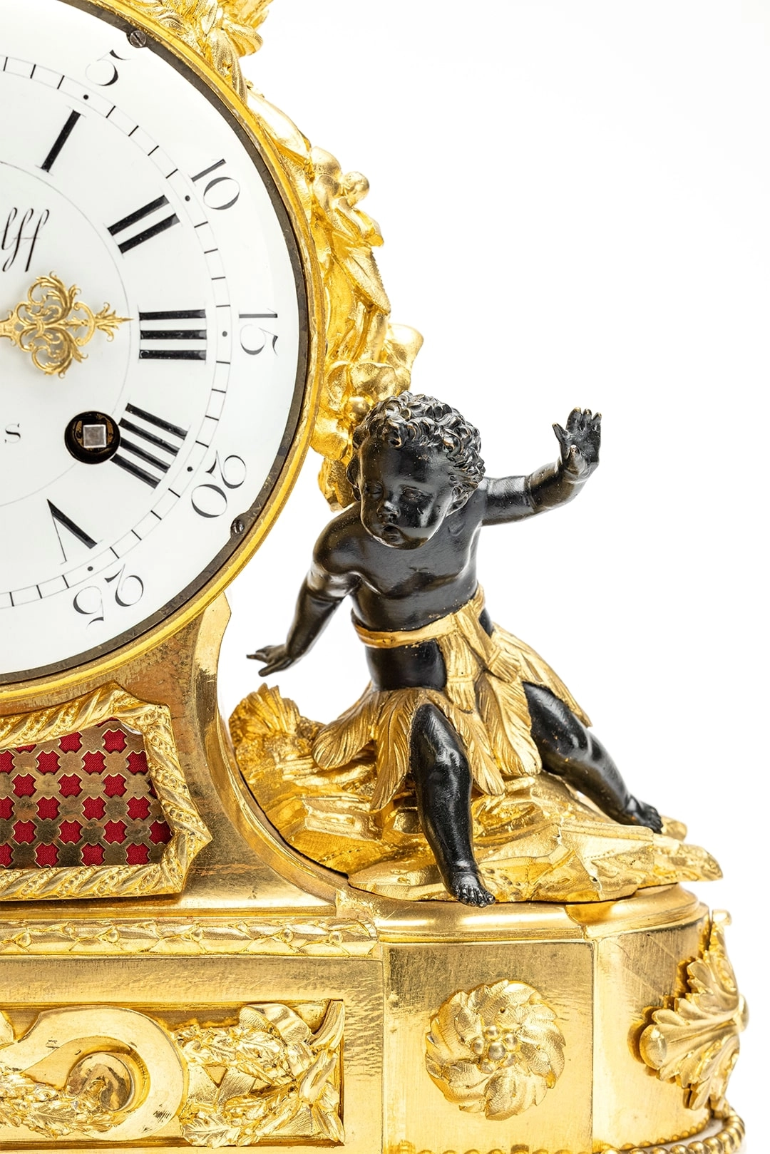 An attractive French Louis XVI ormolu sculptural mantel clock J B Balthazar, circa 1770