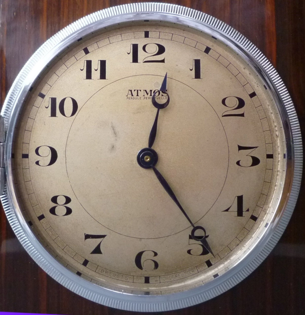 W28 Large nickel Plated Art Deco J. L. Reutter Wall Hanging Three-Glass Atmos Clock. € 16500 $ 19392 £ 14418 ¥ 3003825 DKK 123283 CHF 15046 NOK 185674 CA$ 26577 HK$ 151546