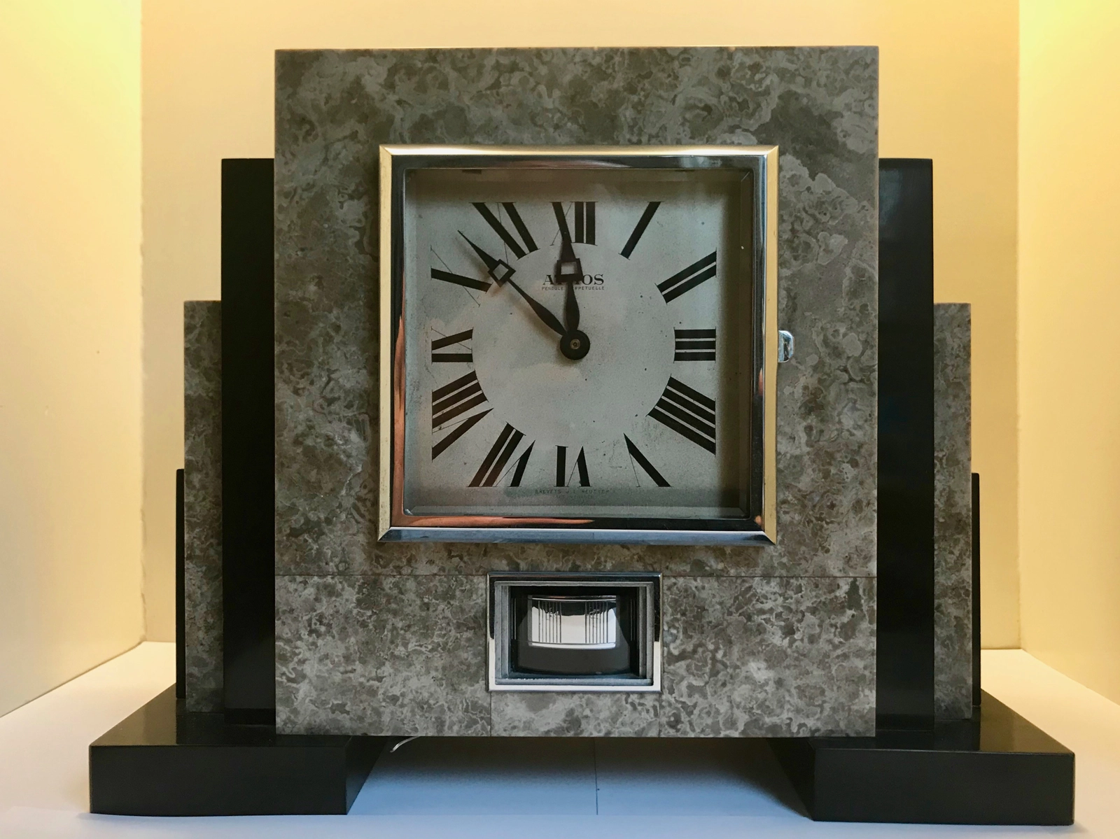 M226 Nickel art deco J.L. Reutter Atmos four-glass atmos clock, tall version