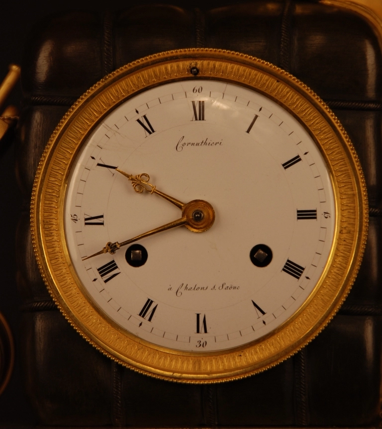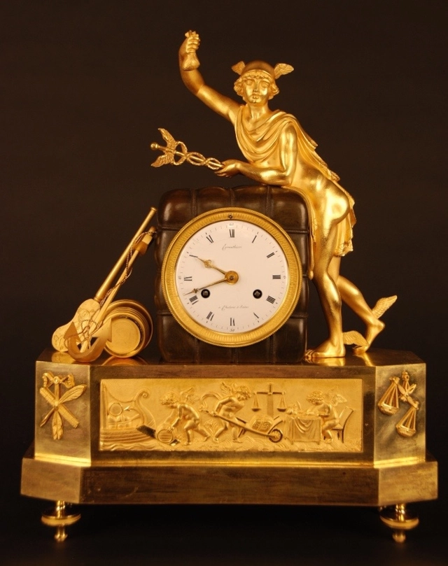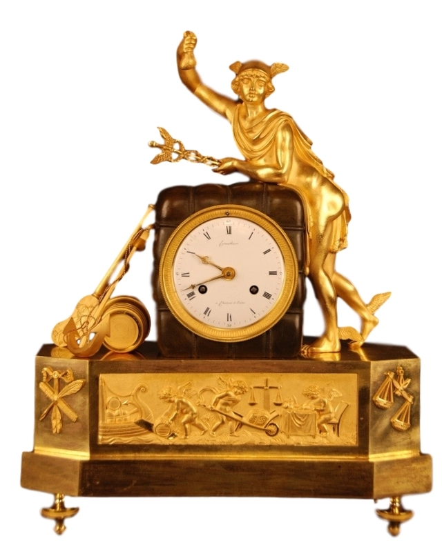 A good French Empire sculptural mantel clock by Colin à Paris circa 1800