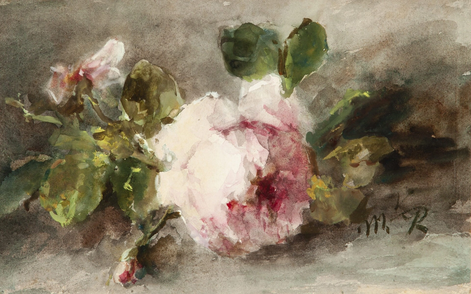MARGARETHA ROOSENBOOM (1843-1896) – FLOWER STILL LIFE WITH PINK ROSES