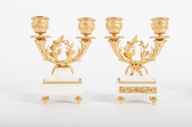 A very nice decorative empire pair of patinated bronze tazza's mounted on beautiful griotte bases
