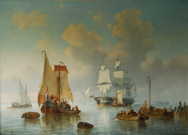 P37 Ships near the coast. Dutch school € 3950 $ 4642 £ 3452 ¥ 719098 DKK 29513 CHF 3602 NOK 44449 CA$ 6362 HK$ 36279