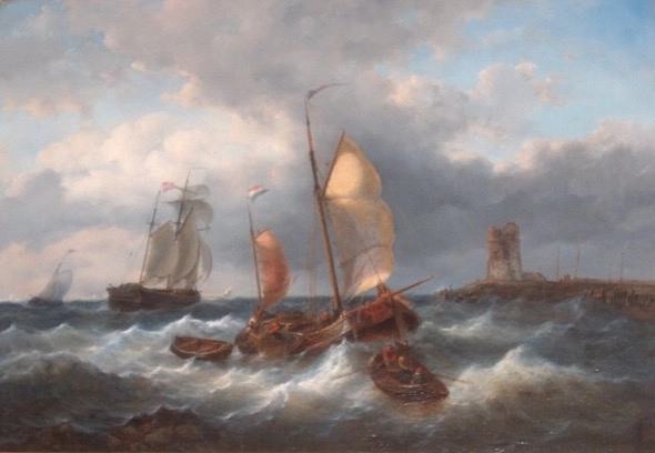 P37 Ships near the coast. Dutch school € 3950 $ 4642 £ 3452 ¥ 719098 DKK 29513 CHF 3602 NOK 44449 CA$ 6362 HK$ 36279