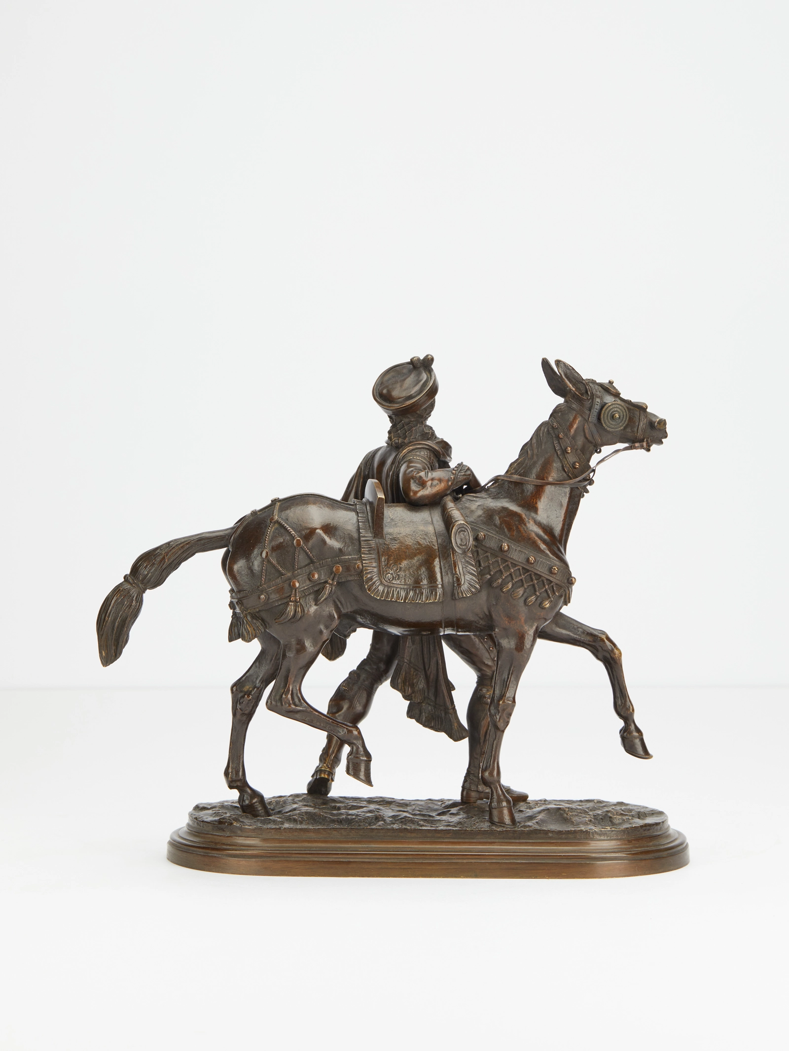 A CHINESE GILT-BRONZE SCULPTURE OF A SCHOLAR RIDING A HORSE