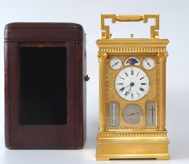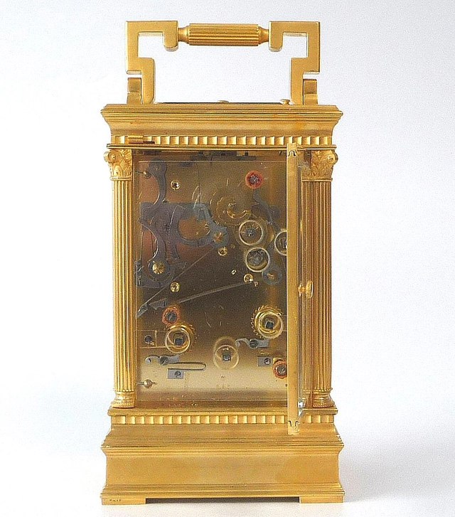 Exclusive gilt bronze portable coach clock, by Lawson & Son, Paris, France circa 1890.