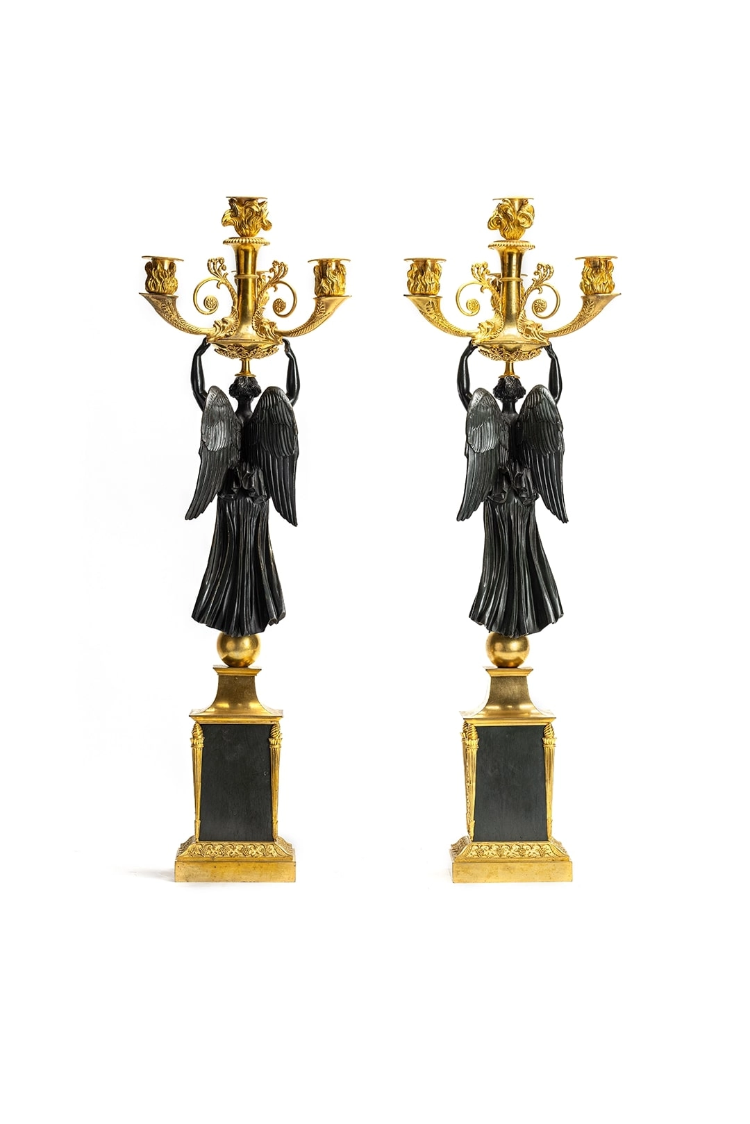 A fantastic black marble ‘retour de l’Egypt’ mantle clock with two side pieces.