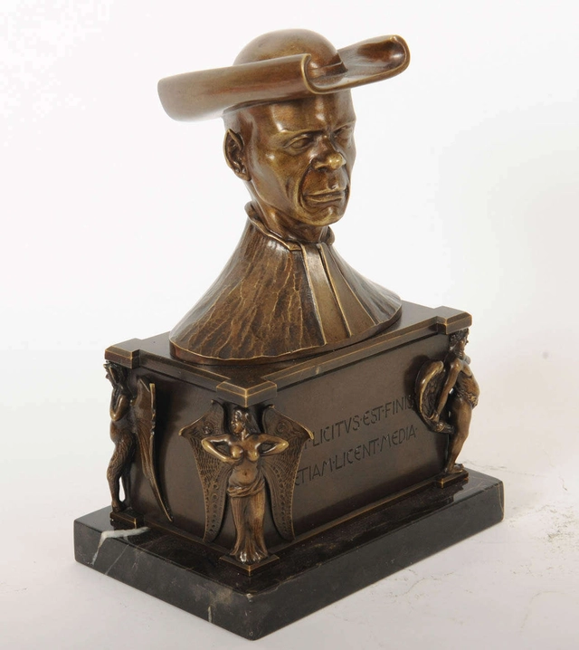 A very nice hypocrite bronze sculpture, Germany, circa 1925. Nice detailed bronze of religious priest surrounded by forbidden figured on the corners that symbolize hypocritical parts of the church.