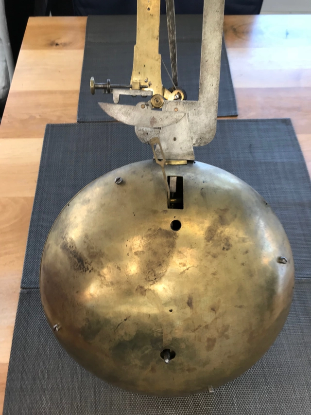 DW26 Stoelschippertje met kwartierslagwerk op dubbele bel. € 12500 $ 14691 £ 10922 ¥ 2275625 DKK 93396 CHF 11399 NOK 140662 CA$ 20134 HK$ 114808